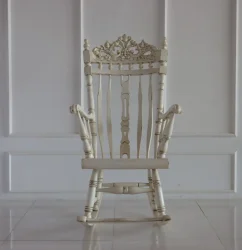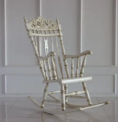 Antique Reproduction Teak Rocking Chair with Crown Carving – Classic Wooden Furniture