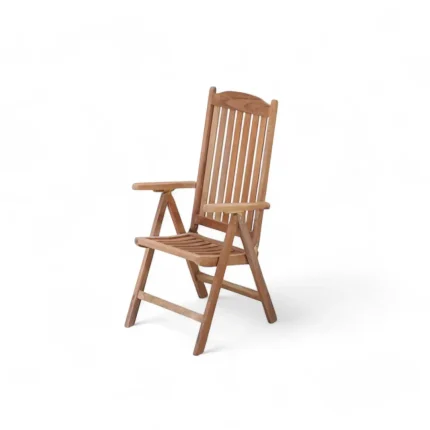 Comfortable and stylish teak wood dining armchair. Perfect for indoor and outdoor use. Durable construction and added armrests for ultimate relaxation.