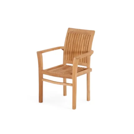 Comfortable and stylish teak wood dining armchair. Perfect for indoor and outdoor use. Durable construction and added armrests for ultimate relaxation.