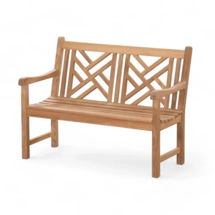 Stylish and durable teak wood garden bench with a high back and lattice design. Weather-resistant and ideal for any outdoor space.