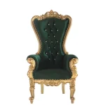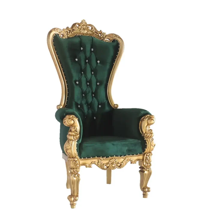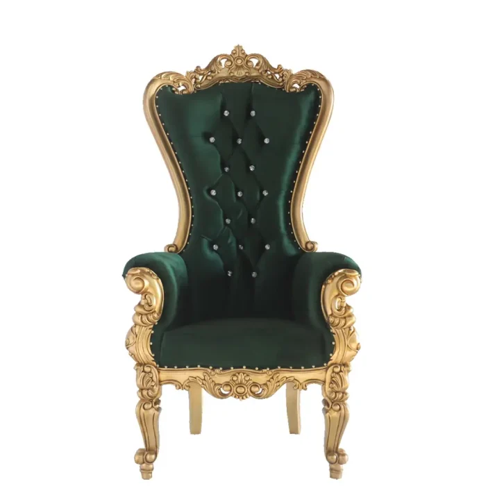Transform your celebration with the Alice Throne Chair Gold Green, and let every guest feel the elegance of royal design.