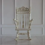 Expertly handcrafted from premium solid teak wood, this rocking chair captures the essence of classic European design, highlighted by an intricately carved crown motif on the backrest — a symbol of elegance and prestige.