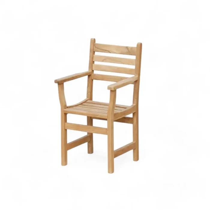 Comfortable teak wood armchair. Durable and weather-resistant. Suitable for indoor and outdoor use.