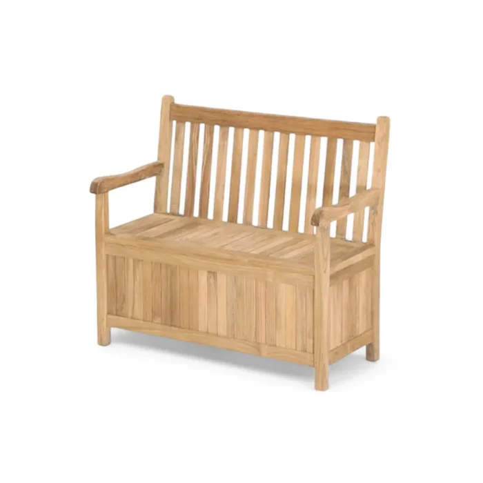 Enhance your outdoor space with our practical and stylish Teak Wood Garden Storage Bench. Crafted from premium teak wood renowned for its durability and natural weather resistance, this bench is perfect for adding both seating and storage to your patio, garden, or deck. The classic design features a comfortable slatted seat and back, along with sturdy armrests for added support. The bench also includes a spacious storage compartment beneath the seat, ideal for keeping gardening tools, cushions, or other outdoor essentials organized and protected from the elements.