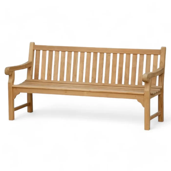 Durable and comfortable teak wood garden bench with high back and armrests. Weather-resistant and ideal for any outdoor space.