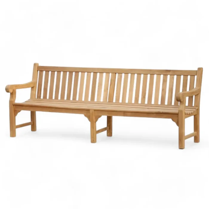 Durable and comfortable teak wood garden bench with high back and armrests. Weather-resistant and ideal for any outdoor space.