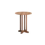 Durable and stylish teak wood bar table with a round slatted top and sturdy pedestal base. Perfect for indoor or outdoor use.