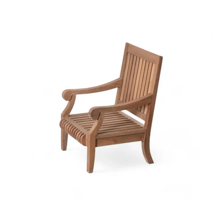 Relax in timeless elegance and comfort with our Teak Wood Armchair. Crafted from premium teak wood renowned for its exceptional durability and weather resistance, this armchair is perfect for both indoor and outdoor use. The classic design features a supportive backrest, comfortable seat, and elegantly curved armrests for ultimate relaxation. The slatted construction of the seat and back provides optimal comfort and breathability, making it ideal for any climate. Whether you’re furnishing your living room, patio, garden, or sunroom, this teak wood armchair offers a blend of sophistication, functionality, and lasting performance.