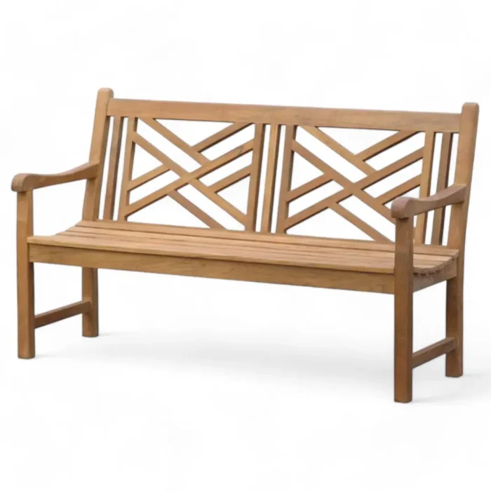 Stylish and durable teak wood garden bench with a high back and lattice design. Weather-resistant and ideal for any outdoor space.