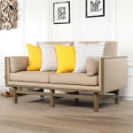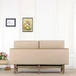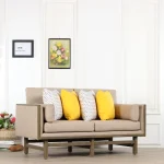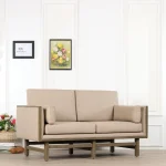 Double Seater Sofa – Mid-Century Wooden Frame with Beige Fabric Cushions