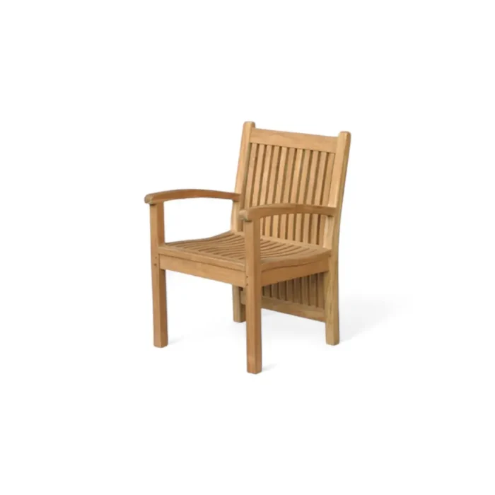 This classic teak wood armchair is a timeless and versatile addition to your home or patio. Crafted from premium-grade teak wood renowned for its exceptional durability and natural resistance to the elements, this chair is suitable for both indoor and outdoor use. It features a comfortable design with a slatted seat and a high back with vertical slats for optimal airflow and back support. The armrests provide added comfort for relaxing on the patio, enjoying meals al fresco, or adding a touch of natural elegance to your dining room. The warm, rich tones of the wood and the clean lines of the design will complement a variety of décor styles. Enjoy its sturdiness and elegance for years to come. Assembly may be required.