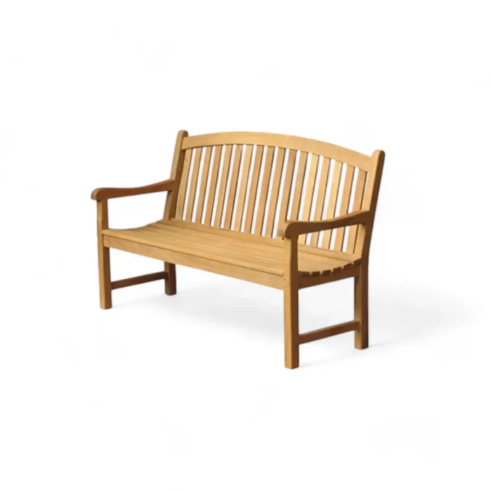 Durable and comfortable teak wood garden bench with high back and armrests. Weather-resistant and ideal for any outdoor space.