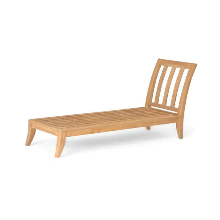 Teak wood chaise lounge. Durable and weather-resistant. Ideal for indoor and outdoor use.