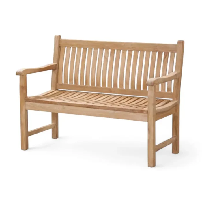 Durable and comfortable teak wood garden bench with high back and armrests. Weather-resistant and ideal for any outdoor space.