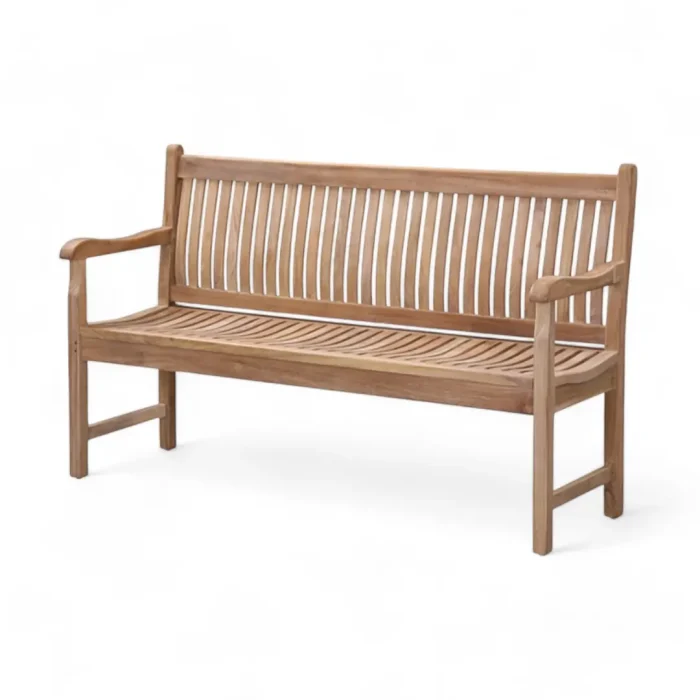 Durable and comfortable teak wood garden bench with high back and armrests. Weather-resistant and ideal for any outdoor space.