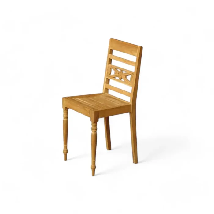 This elegant teak wood dining chair is a beautiful and practical addition to any dining space. Crafted from high-quality teak wood renowned for its durability and natural weather resistance, this chair is suitable for both indoor and outdoor use. It features a distinctive design with a slatted seat and a high back with an ornamental carved motif for added support and a touch of sophistication. The warm wood tones and elegant design will complement a variety of décor styles, from traditional to contemporary. Enjoy its sturdiness and classic appeal for years to come. Assembly may be required.