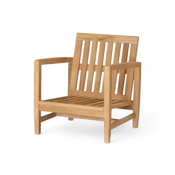 Relax in timeless elegance and comfort with our Teak Wood Armchair. Crafted from premium teak wood renowned for its exceptional durability and weather resistance, this armchair is perfect for both indoor and outdoor use. The classic design features a supportive backrest, comfortable seat, and sturdy armrests for ultimate relaxation. The slatted construction of the seat and back provides optimal comfort and breathability, making it ideal for any climate. Whether you’re furnishing your living room, patio, garden, or sunroom, this teak wood armchair offers a blend of sophistication, functionality, and lasting performance.