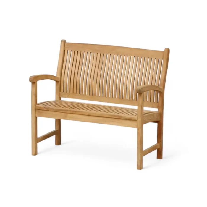 Durable and comfortable teak wood garden bench with high back and armrests. Weather-resistant and ideal for any outdoor space.