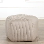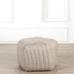 Modern Off-White Corduroy Square Pouf – Plush Ottoman & Soft Floor Seat