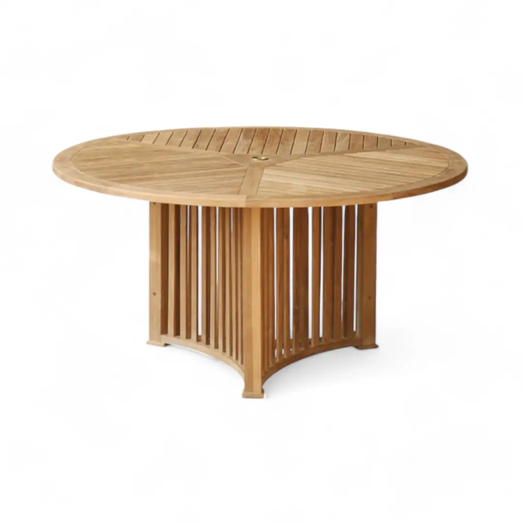 Enjoy casual outdoor dining with our Teak Wood Round Dining Table. Crafted from high-quality teak wood renowned for its durability and natural beauty, this table is built to withstand the elements and provide years of enjoyment. The spacious round tabletop offers ample space for meals and gatherings, making it perfect for your patio, garden, or any outdoor dining area. Its classic design and warm wood tones will complement any outdoor setting.