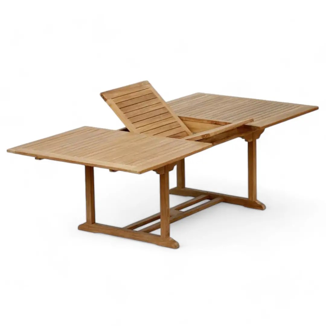 Enjoy versatile and spacious outdoor dining with our Teak Wood Extending Rectangular Dining Table. Expands easily to fit any occasion.