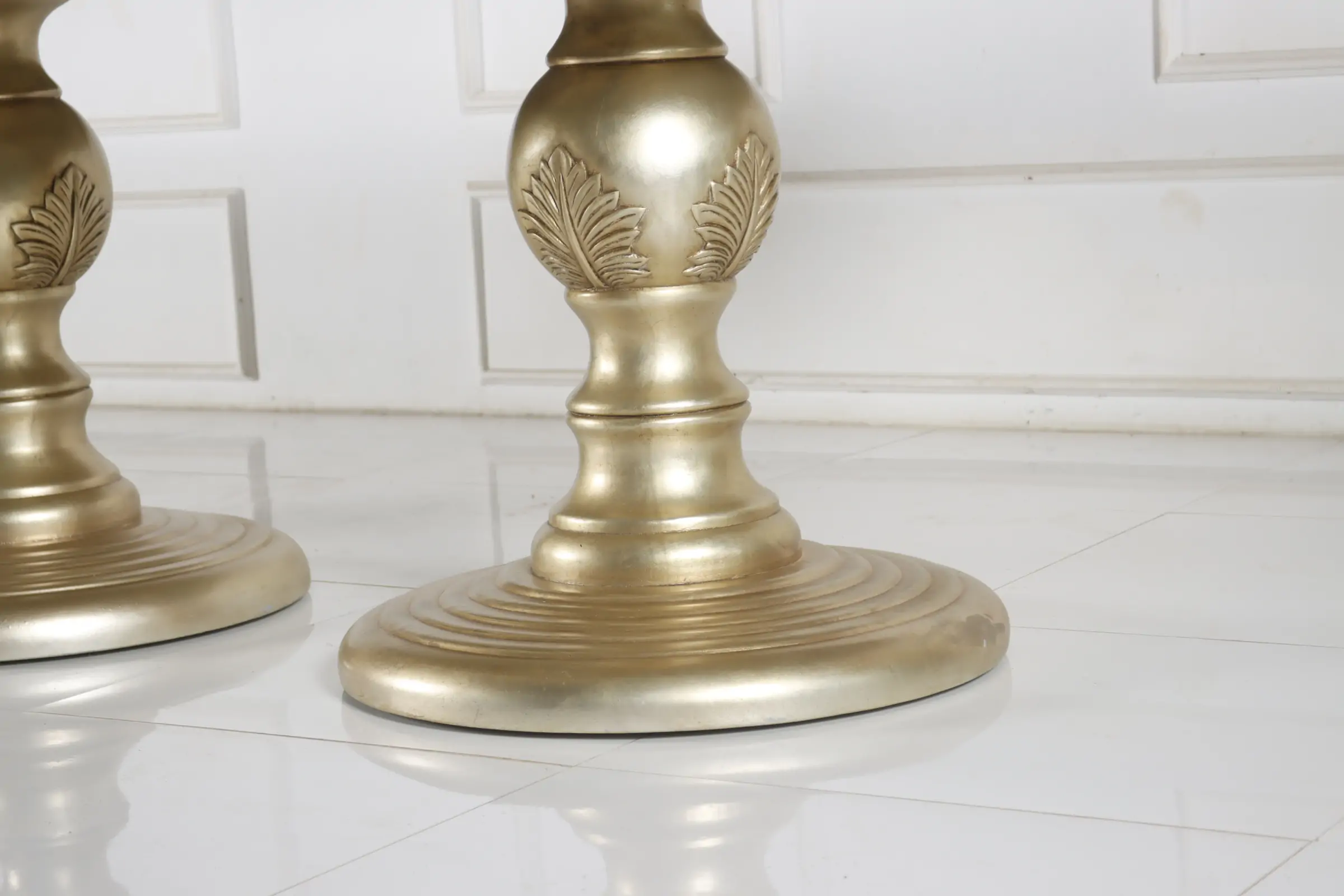 Every inch of this table reflects meticulous artisan work, from the sculpted base details to the smooth gold surface that gleams with subtle antique tones. Its timeless charm makes it a perfect centerpiece for luxury homes, villas, or hospitality spaces that seek both opulence and authenticity.