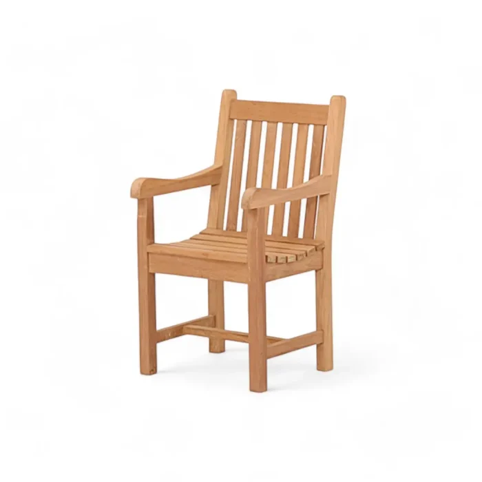 Comfortable and durable teak wood armchair with high back. Weather-resistant and suitable for indoor and outdoor use.