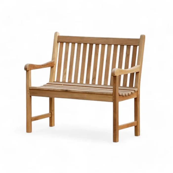 Durable and comfortable teak wood garden bench with high back and armrests. Weather-resistant and ideal for any outdoor space.