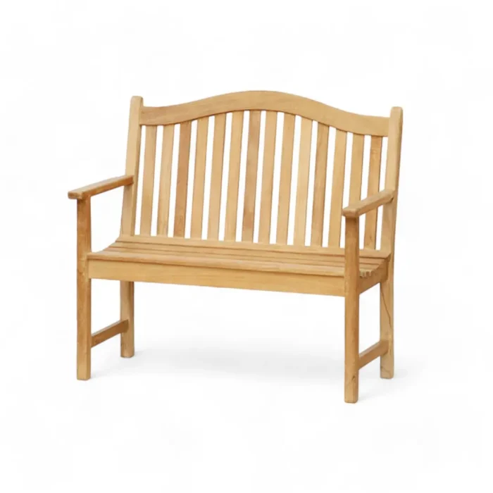 Durable and comfortable teak wood garden bench with high back and armrests. Weather-resistant and ideal for any outdoor space.