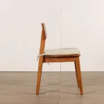 A refined mid-century dining chair crafted from solid teak wood, featuring a comfortable beige fabric seat for elegant everyday dining.