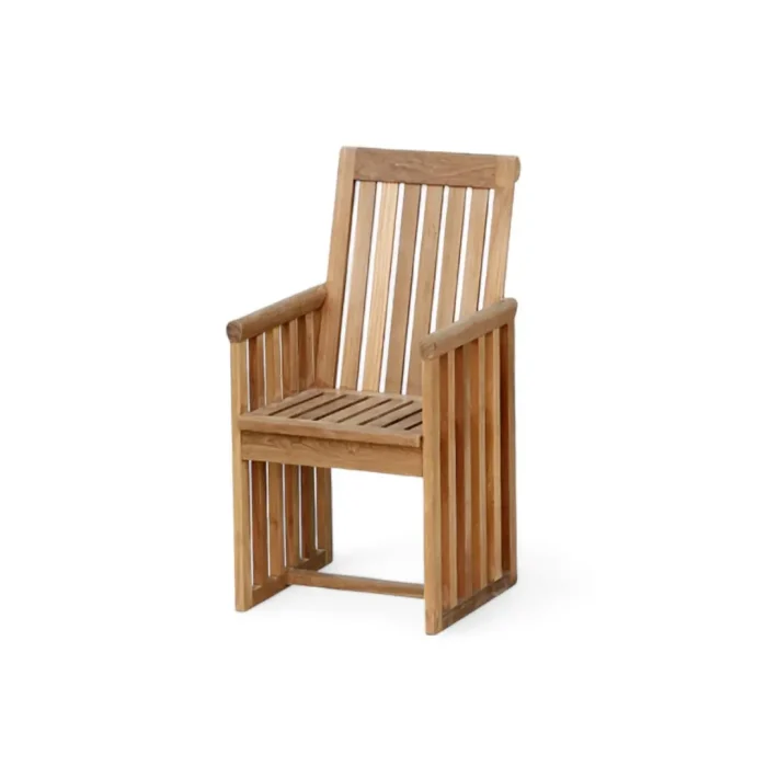This classic teak wood armchair is a timeless and versatile addition to your home or patio. Crafted from premium-grade teak wood renowned for its exceptional durability and natural resistance to the elements, this chair is suitable for both indoor and outdoor use. It features a comfortable design with a slatted seat and a high back with vertical slats for optimal airflow and back support. The armrests provide added comfort for relaxing on the patio, enjoying meals al fresco, or adding a touch of natural elegance to your dining room. The warm, rich tones of the wood and the clean lines of the design will complement a variety of décor styles. Enjoy its sturdiness and elegance for years to come. Assembly may be required.