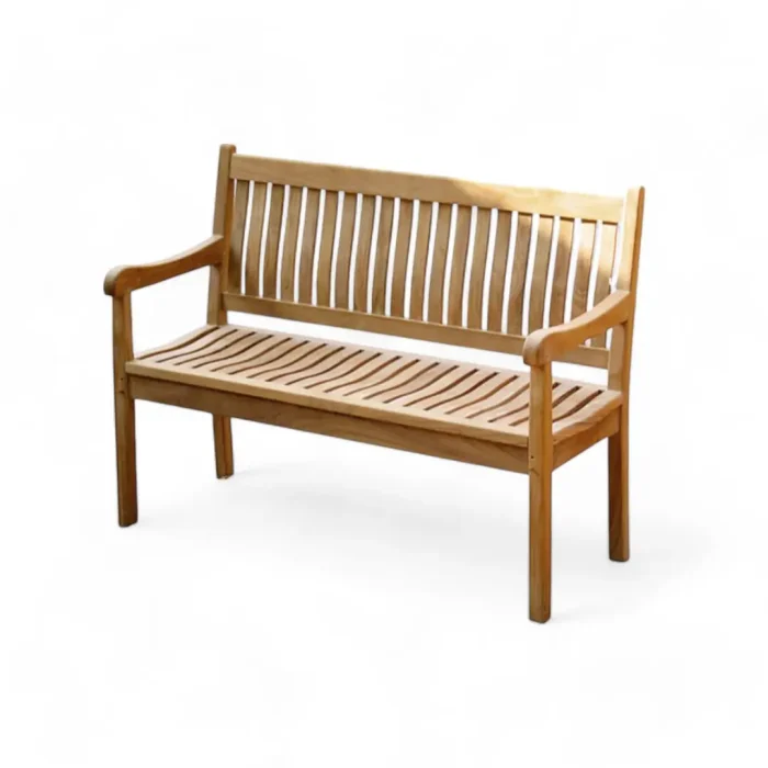 Durable and comfortable teak wood garden bench with high back and armrests. Weather-resistant and ideal for any outdoor space.